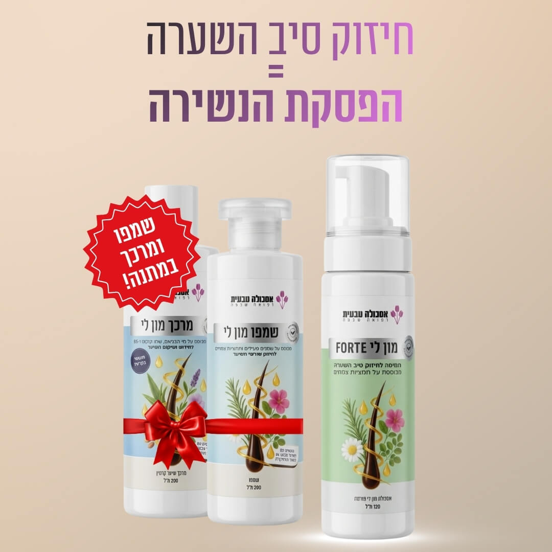 אתם מקבלים תמצית פעילה איכותית, ובנוסף שמפו ומרכך משלימים, פתרון שלם, טבעי ומדויק, ללא צורך ברכישת מוצרים נוספים.
