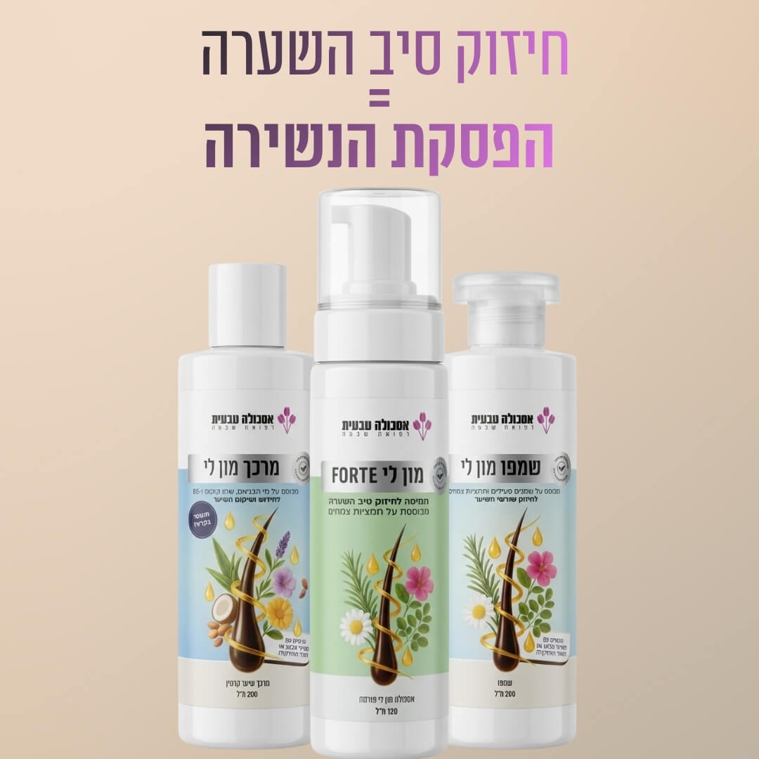 ערכת מון-לי מציעה גישה שונה מפתרונות נקודתיים או מוצרים בודדים. במקום להסתמך על שמפו בלבד או תכשיר זמני, הערכה מבוססת על שיטה משולבת המטפלת גם בקרקפת וגם בסיב השערה, עם דגש על חיזוק סיב השערה כחלק משגרת טיפוח יומיומית ברורה.