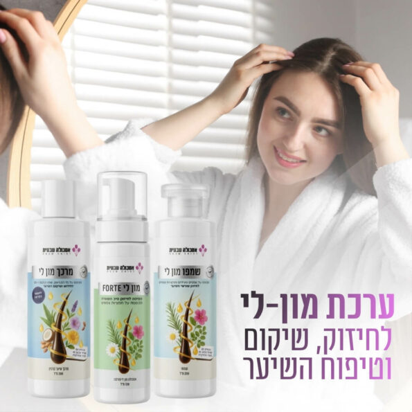 ערכת מון-לי לשיער ולקרקפת, מבוססת על שיטה המשלבת תמצית פעילה, שמפו ומרכך. הערכה פותחה על ידי ד״ר יעקב עצמון, מגדולי הנטורופטים בישראל מאז 1977, ומכילה ריכוז גבוה של תמציות צמחים ושמנים פעילים, באישור משרד הבריאות. השילוב בין המוצרים נועד ליצור שגרה ברורה ונוחה לשימוש יומיומי.