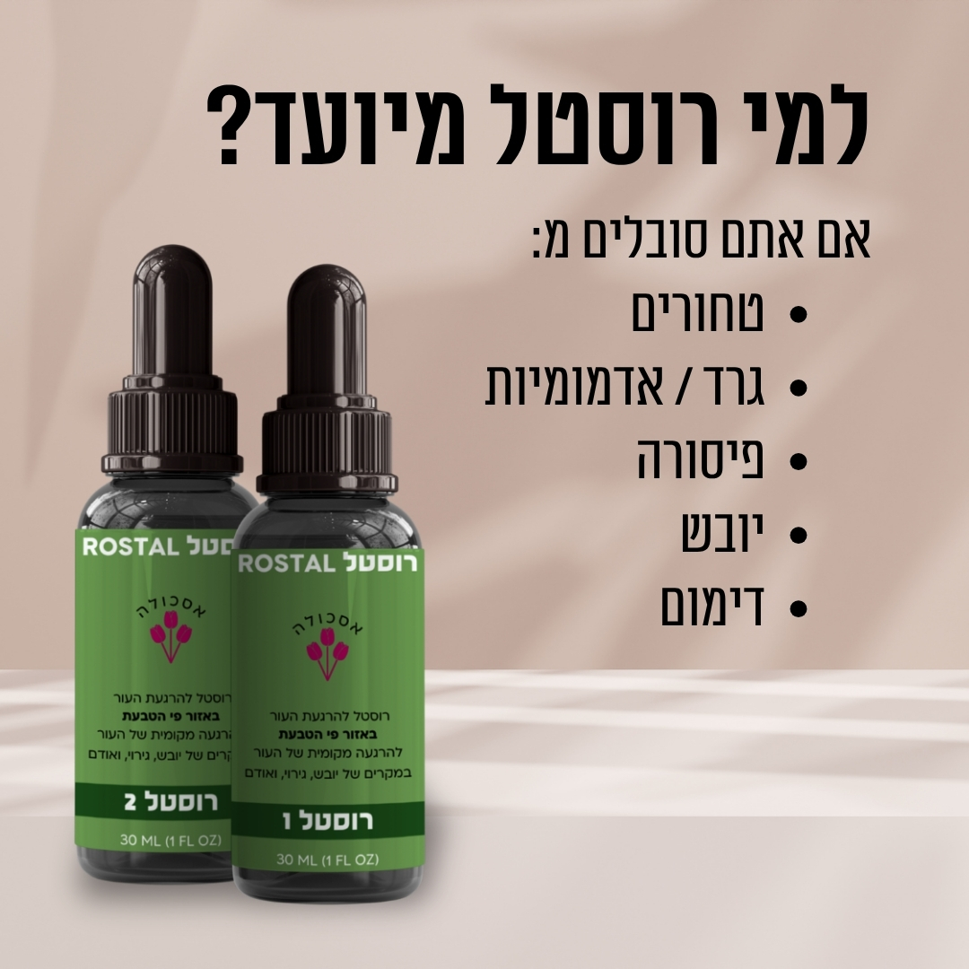 רוסטל נוצר במיוחד עבור אלו שמתמודדים עם תחושות של גרד, אדמומיות, טחורים, נפיחות, פיסורה ורגישות מקומית.
